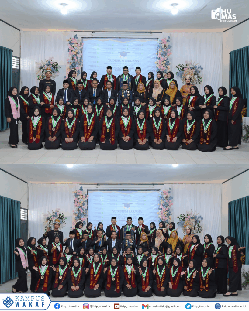 “Yudisium bukan akhir perjuangan, tetapi awal tanggung jawab baru. Di mana pun kalian berada, kalian membawa nama besar FISIP Universitas Almuslim. Jadilah alumni yang beretika, berprestasi, dan membanggakan,” ujarnya.